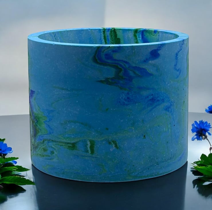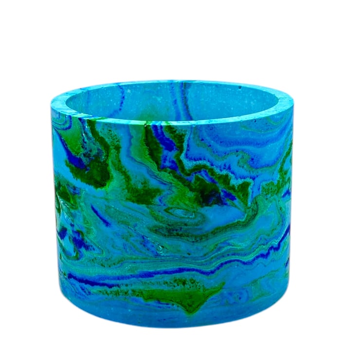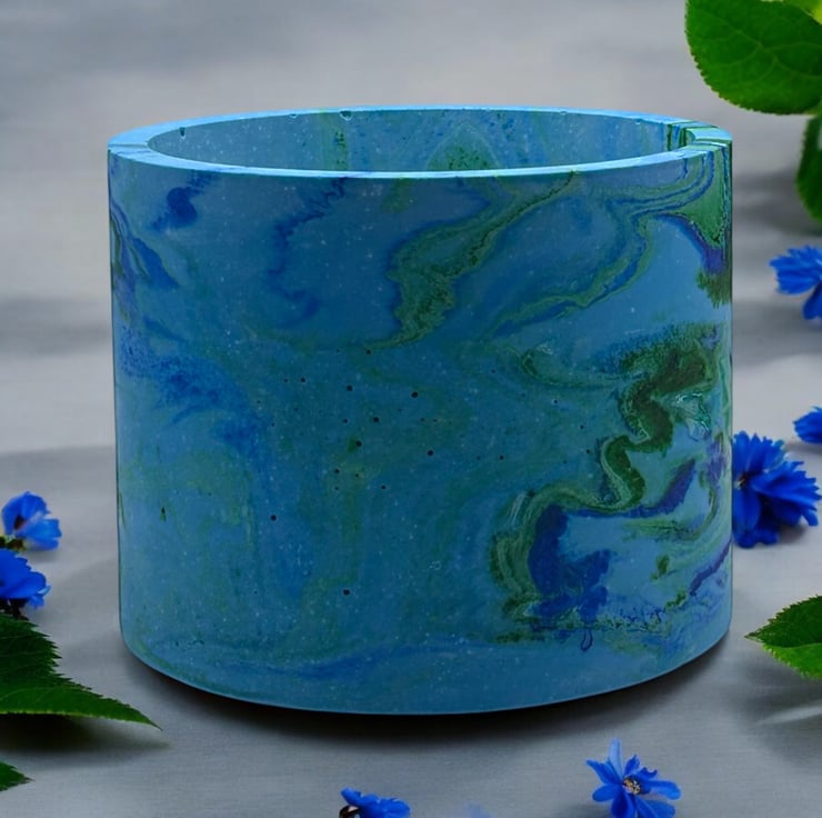 The beautiful colours of the sea inspired me to make this plant pot. I used blues and greens to create the seascape effect and then added a small amount of green biodegradable glitter to give it a few subtle shimmery patches. The beautiful marbling effect makes each pot a unique piece of art, making it an ideal gift for a special person or a lovely treat for yourself.