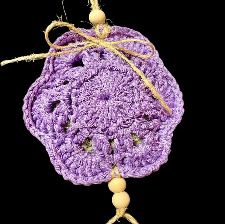This set of 2 purple Lavender sachet bag is crocheted with purple cotton yarn with a Yorkshire grown lavender insert.