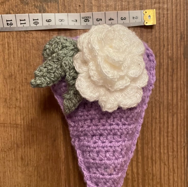 Individually crocheted with acrylic yarn and stuffed with polyester filler.
