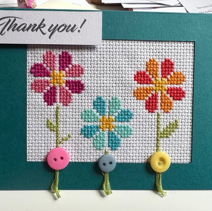 Cross stitch 'Thank You' card.