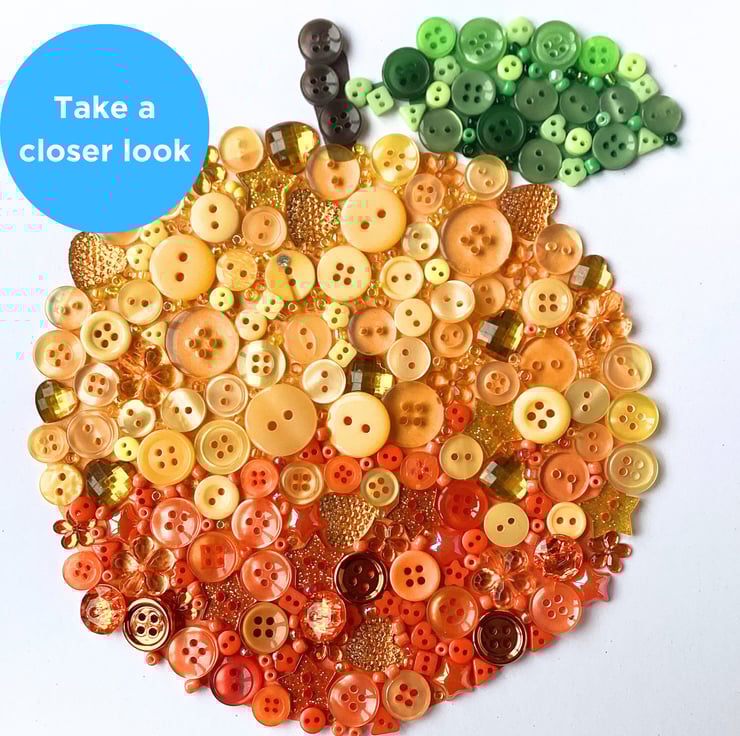 Your artwork is truly unique as no two pieces are exactly the same - your fruit from whatever materials I have to hand - buttons, flat backs and mini-beads.