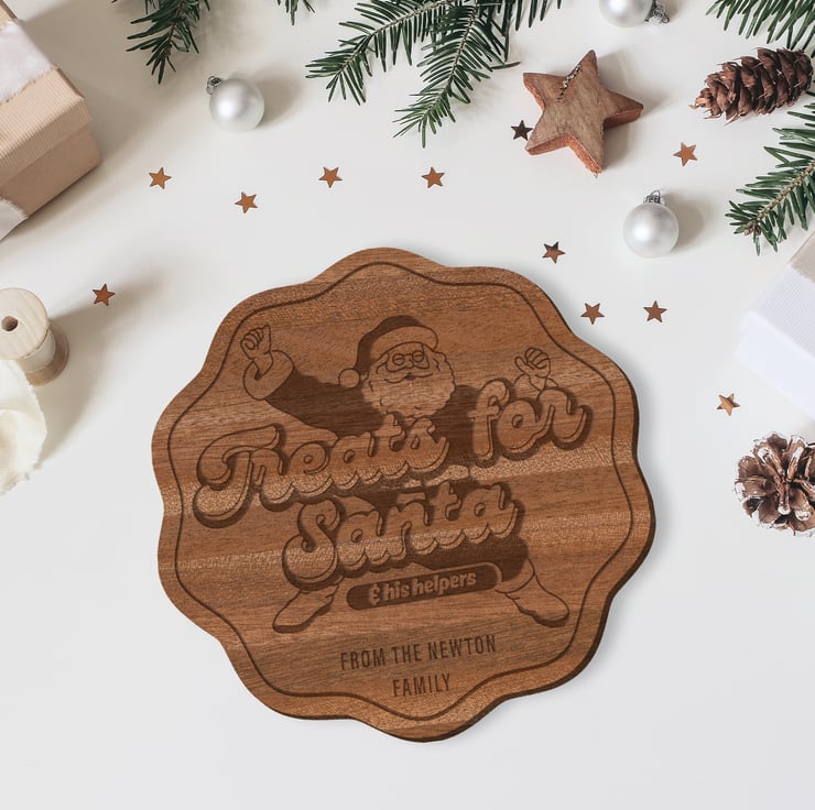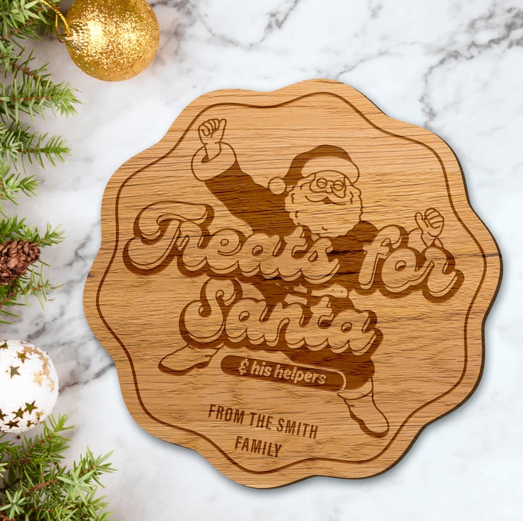 Make Christmas Eve extra special with this Personalised ‘Treats for Santa’ Wooden Plaque! This charming retro design is a delightful way to present treats for Santa and his helpers, complete with your family’s name. Crafted from premium wood in a range of finishes, this plaque adds a unique, rustic touch to your holiday decor.