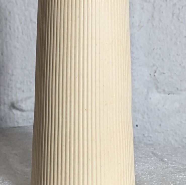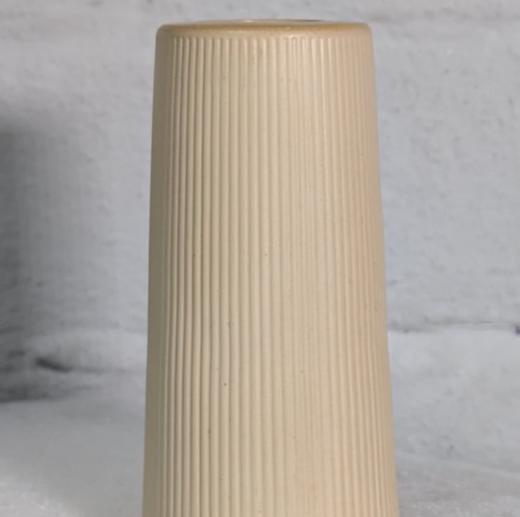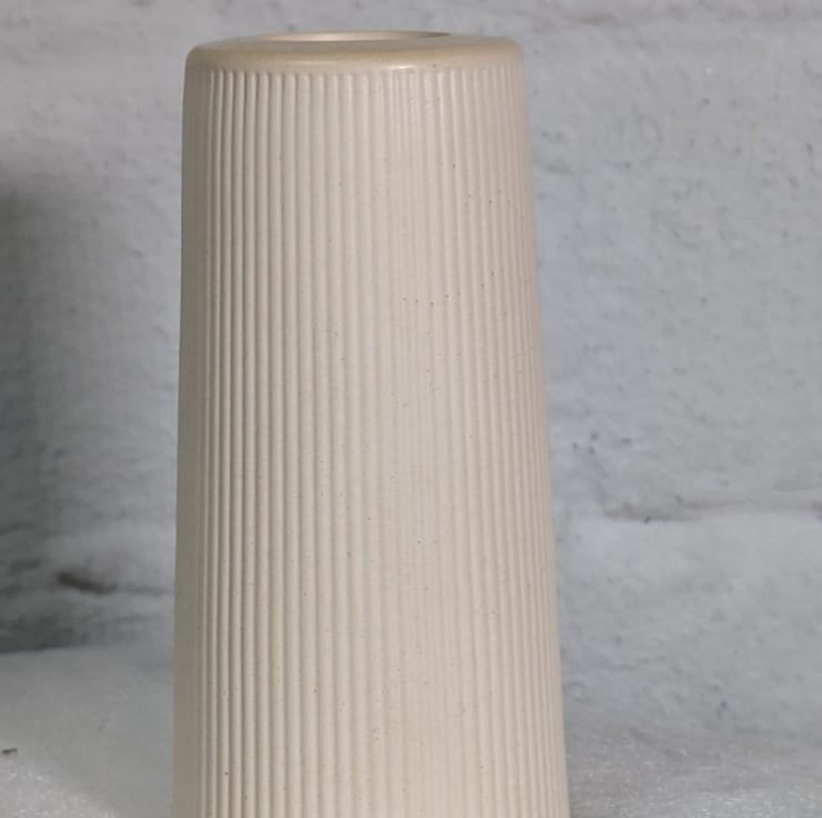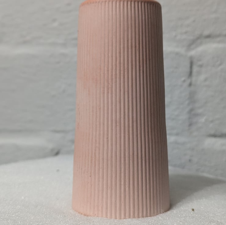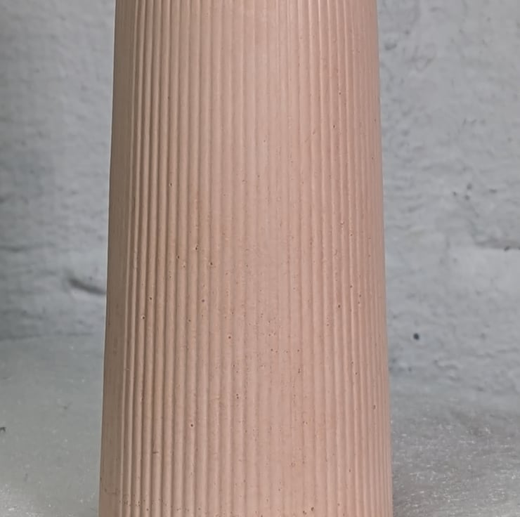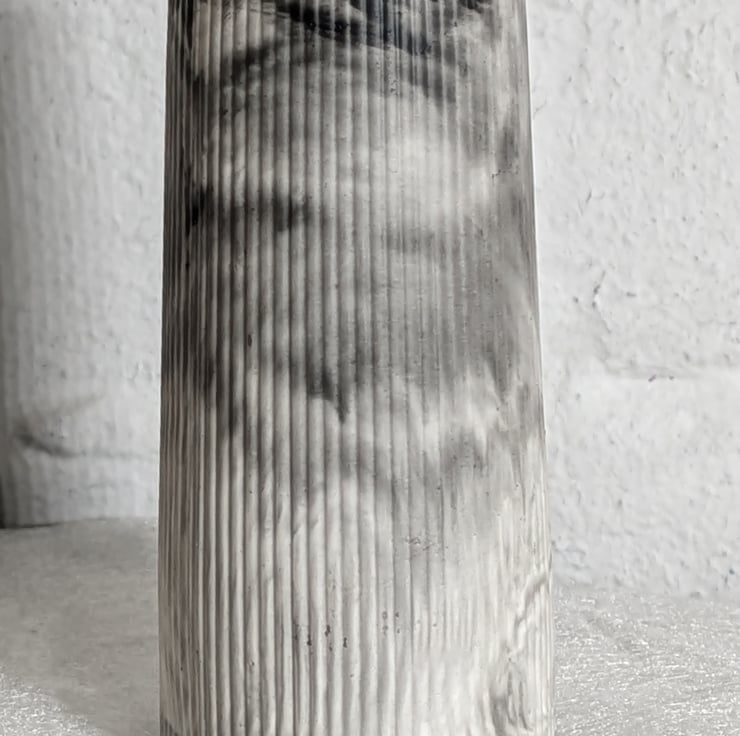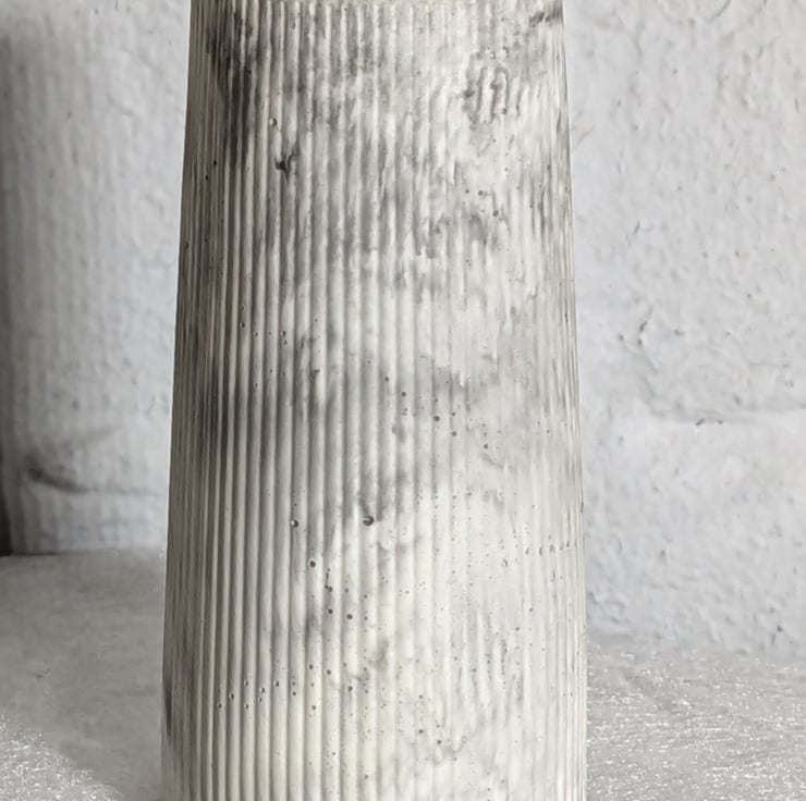 The tapered ribbed vase is handmade using Aqua cast resin and Pigment dye to colour.