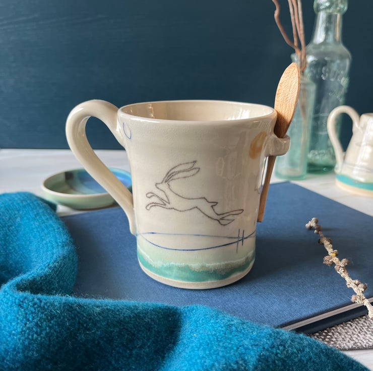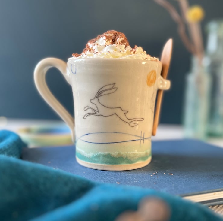 This hot chocolate mug forms part of my Hare Mustard moon range - The hare can symbolise change and feminine energy and is also often linked with the