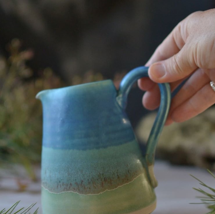 A beautiful handmade ceramic jug, perfect for milk for the coffee and tea drinkers in your life. . . Or custard for the pie lovers.