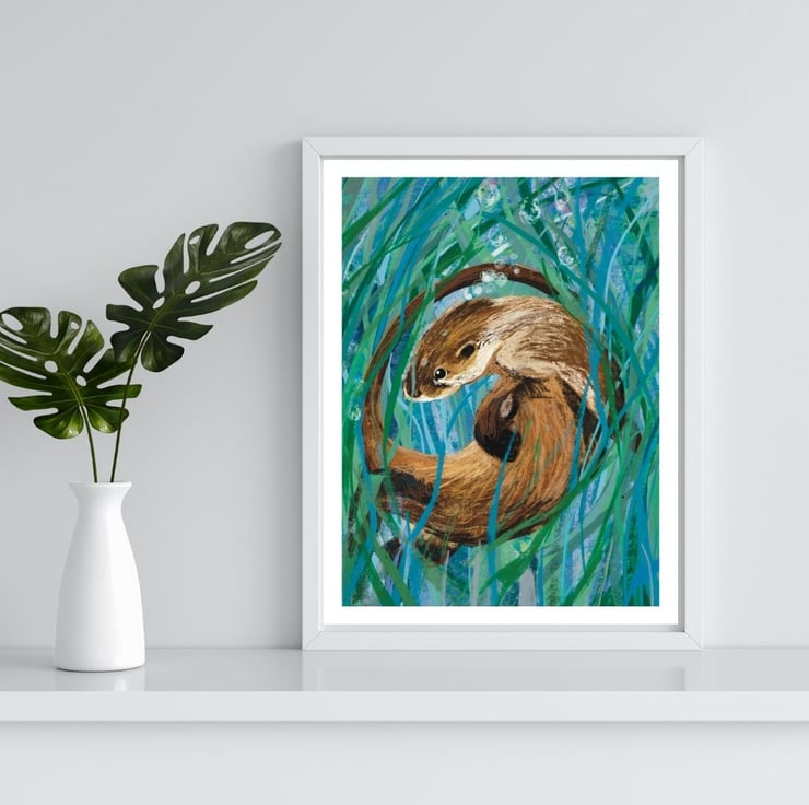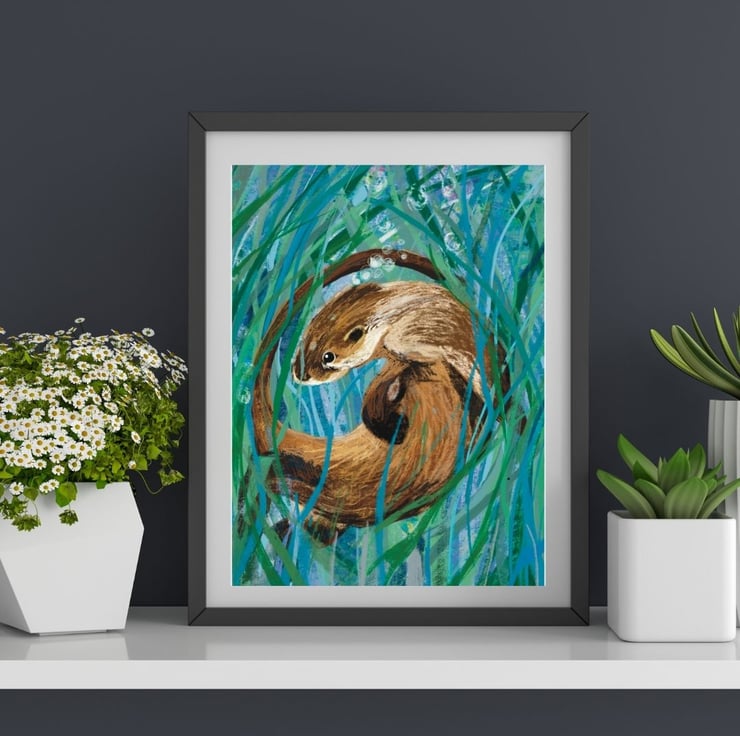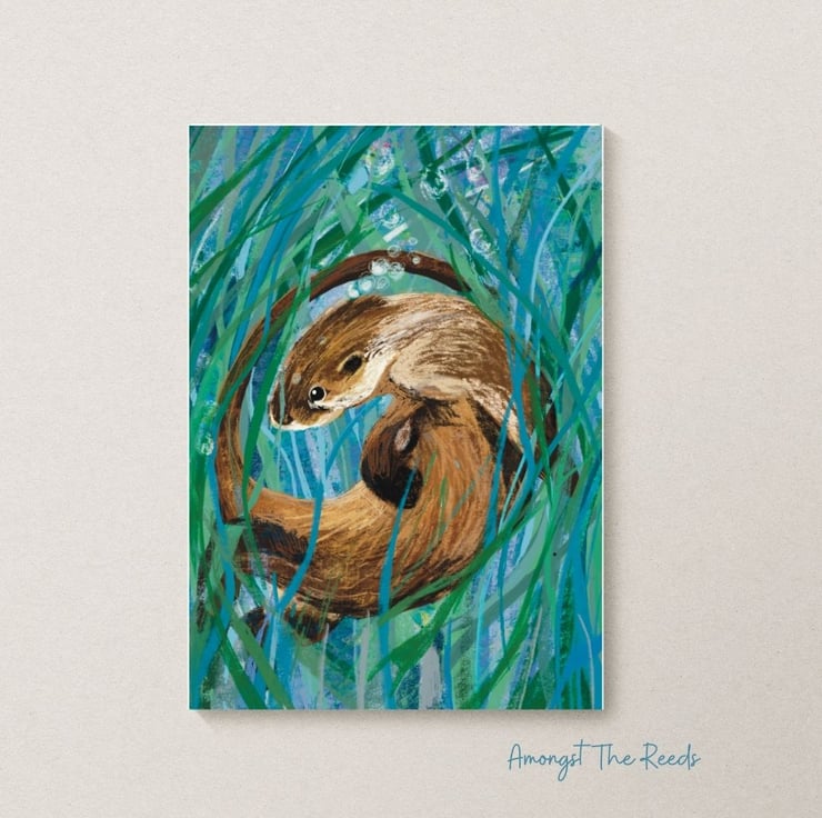 Rarely seen but much loved are the otters who swim amongst the reeds in our riverbeds. A unique and colourful print that would look fabulous in your home or would make the perfect gift for someone special.