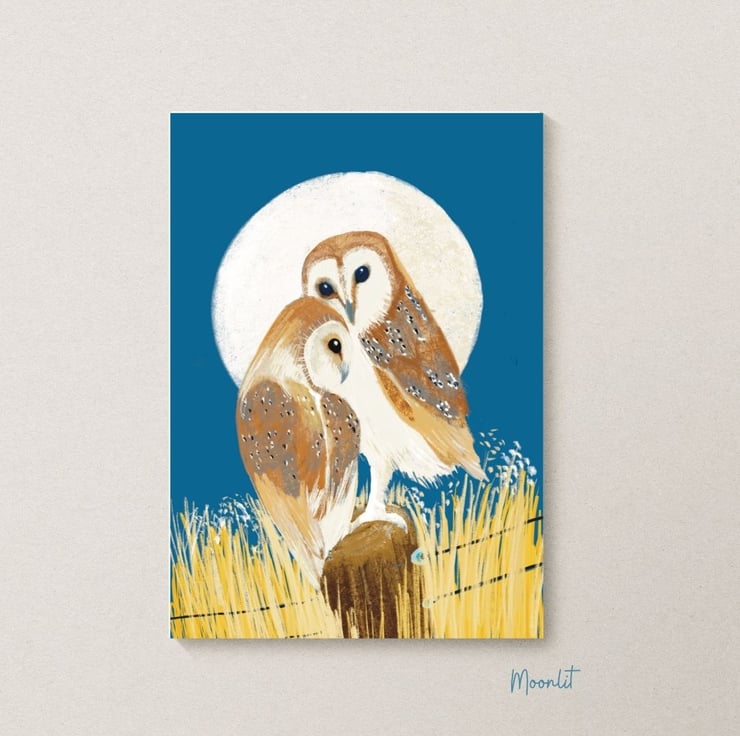 A perfect pair of owls lit up by the moon creating a beautiful print for the home. Would also make a wonderful gift for someone special.
