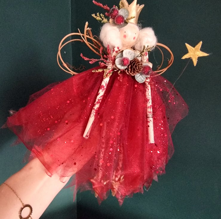 Hi my name is Robin I'm handmade from head to toe I'd love to shine on my very own christmas tree this year maybe it might be you I promise to sparkle and make your dreams come true .