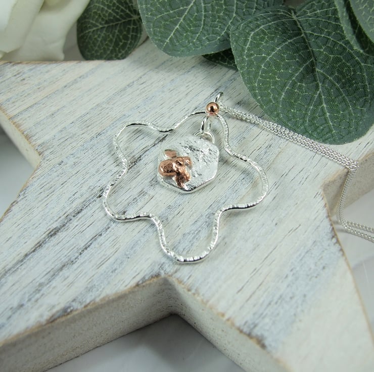 Sterling Silver and Copper Bee Necklace. Sustainable silver and copper one of a kind pendant.
