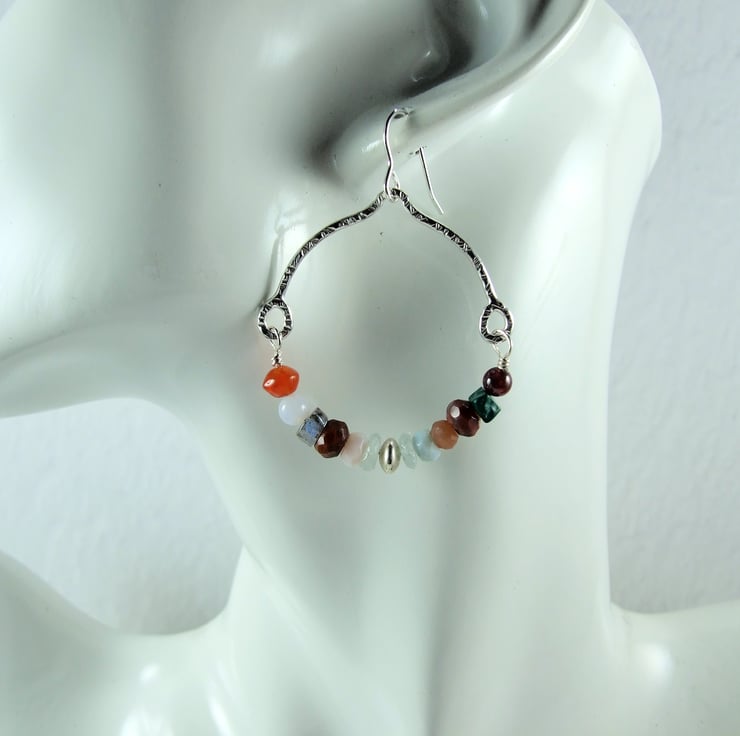 Sterling Silver and mixed gemstone large hoop earrings.