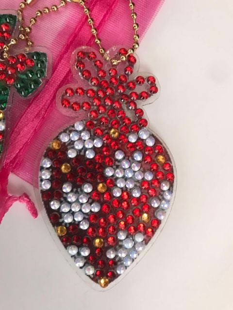 Five Christmas tree decorations worked on acrylic support on both sides with a keychain.