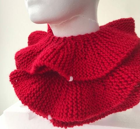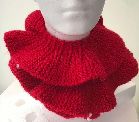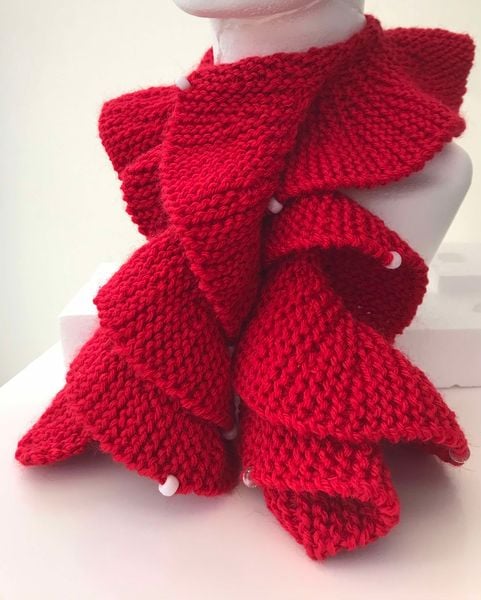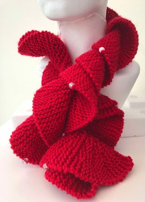 Knitted Scarf. Neck warmer. Potato chip scarf. Red. Curly scarf.