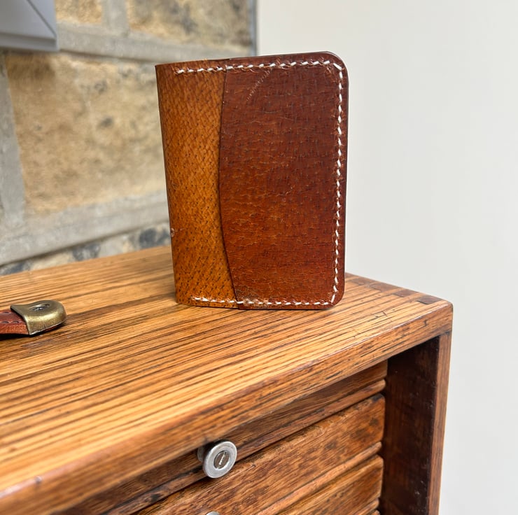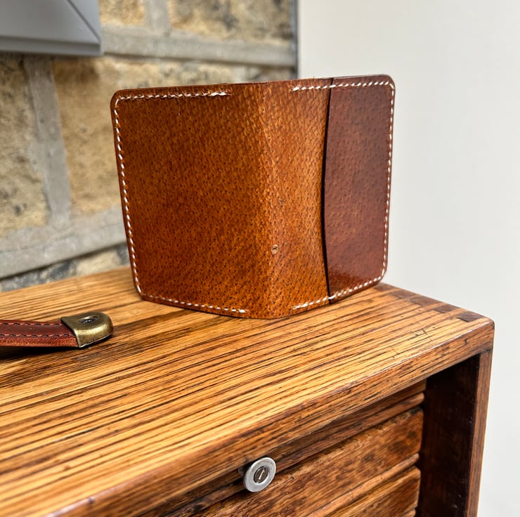 The Montague wallet is hand sewn using traditional saddle stitching with Ritza Tiger waxed thread in winter white for superior strength. The edges are burnished so it retains its natural oils and won't dry out.
