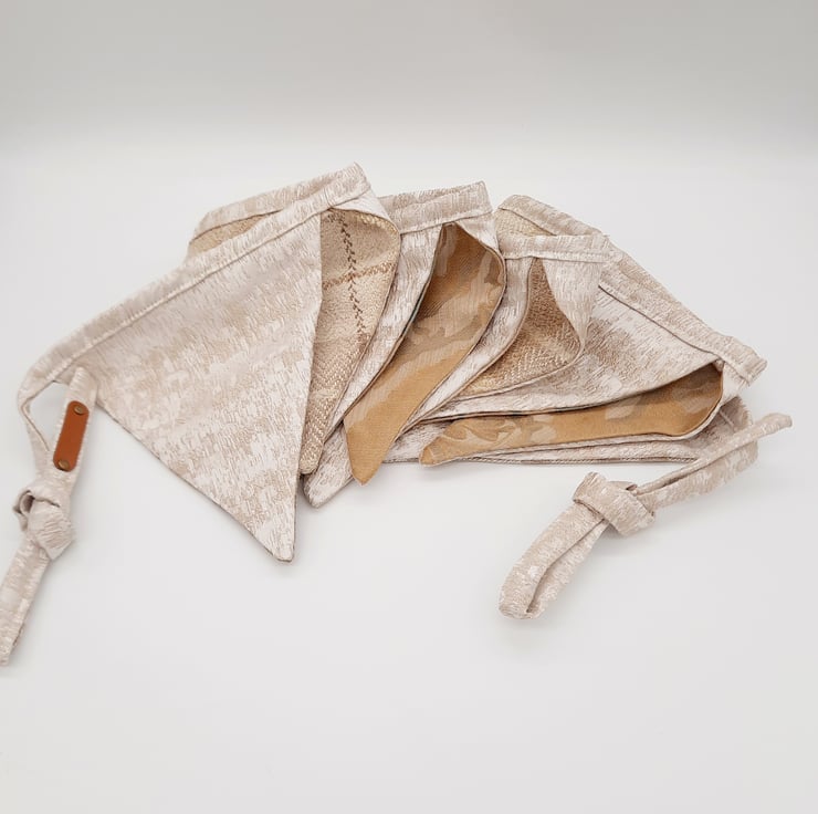 It had a tan hand stamped M-O-F (Maid-of-fabric logo) on one end.