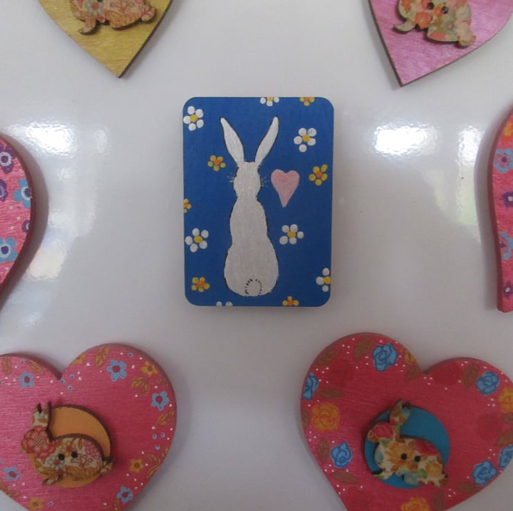 A hand painted wooden picture, with a magnet attached to the back. Ideal as a fridge magnet etc.