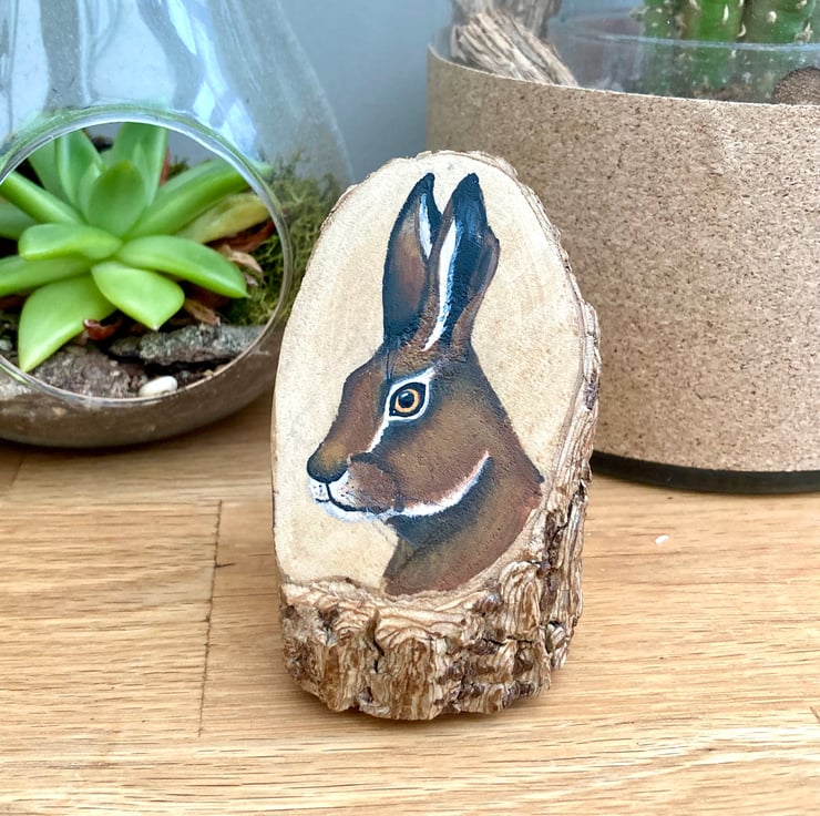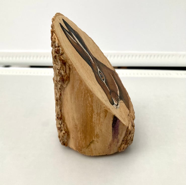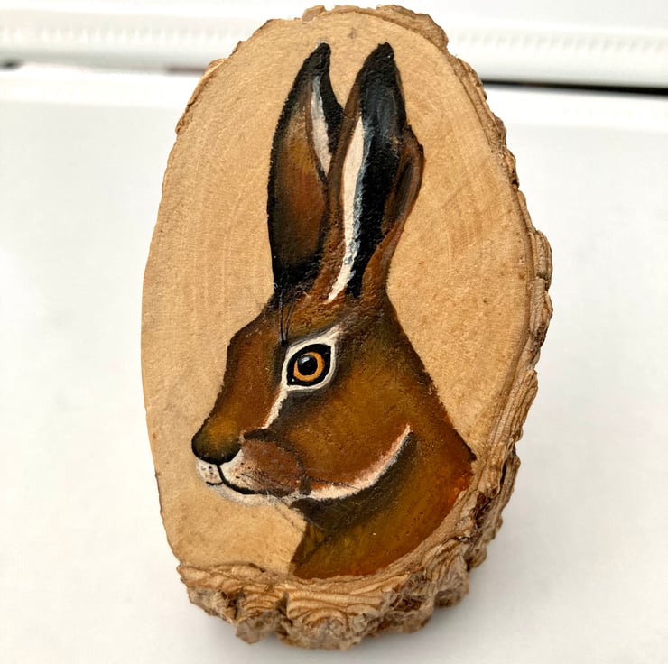 A handsome Brown Hare is featured on this piece of branch cut from my black lace ( sambucus nigra) bush.