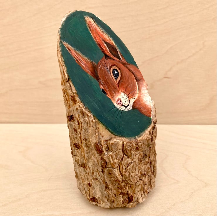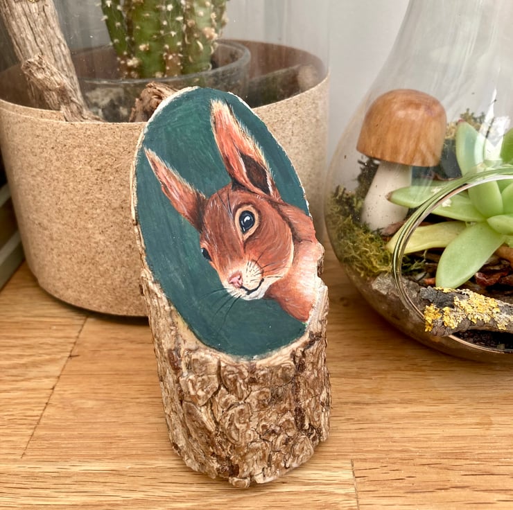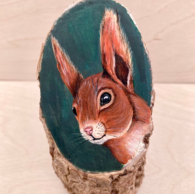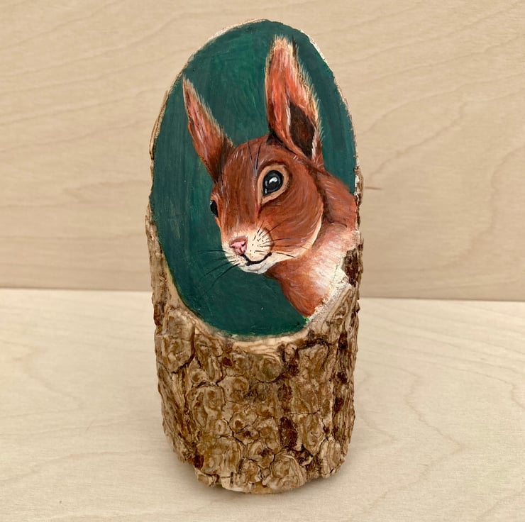 A handsome Red squirrel is featured on this piece of branch cut from a black lace ( sambucus nigra) bush growing in my garden.