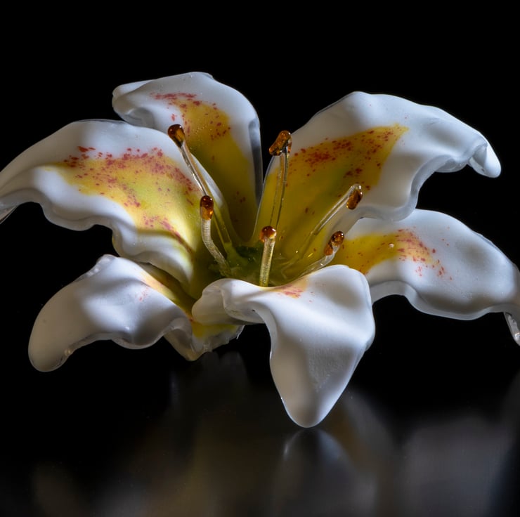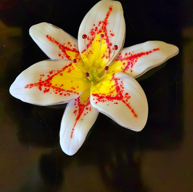 Handmade Fused Glass Matte Striped Yellow and Red Stargazer Lily with Wall Mount