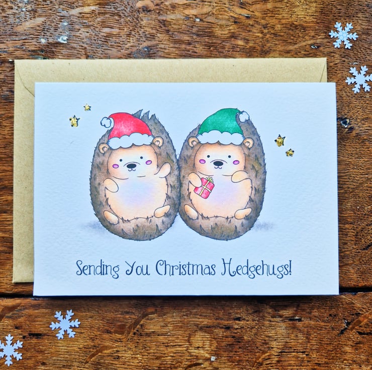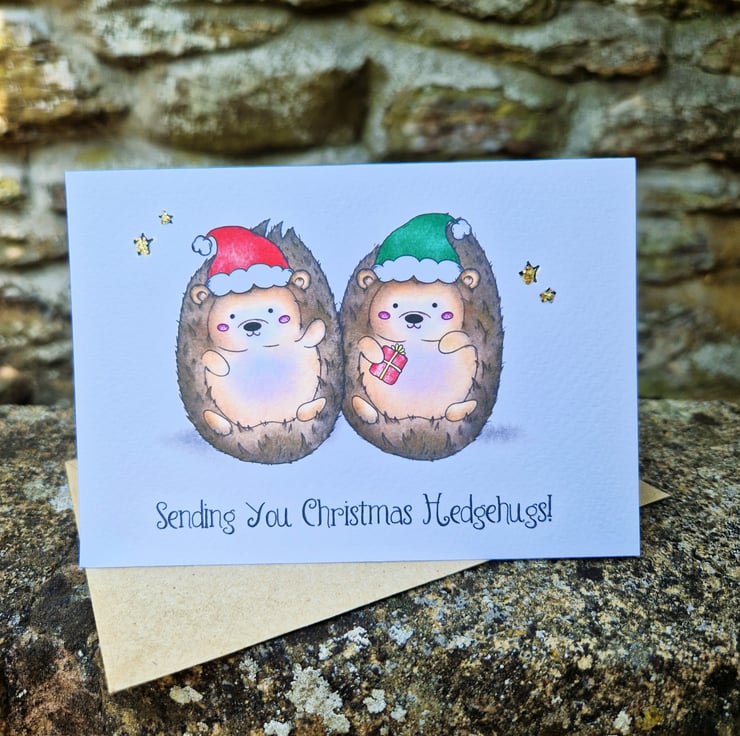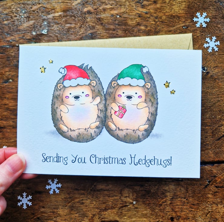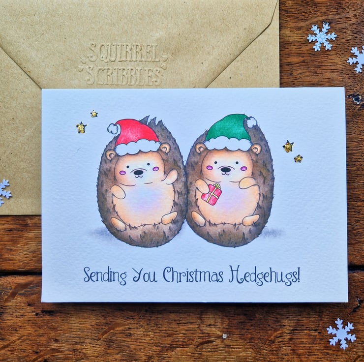 A hedgehog Christmas card is the perfect way to send some Christmas hedgehugs to friends and loved ones! This adorable Christmas card is handprinted on textured card and glittered by hand. (P.S: If you would like to purchase multiple cards, there are Christmas card 'choose your own bundle deals' available in my shop for this month!)