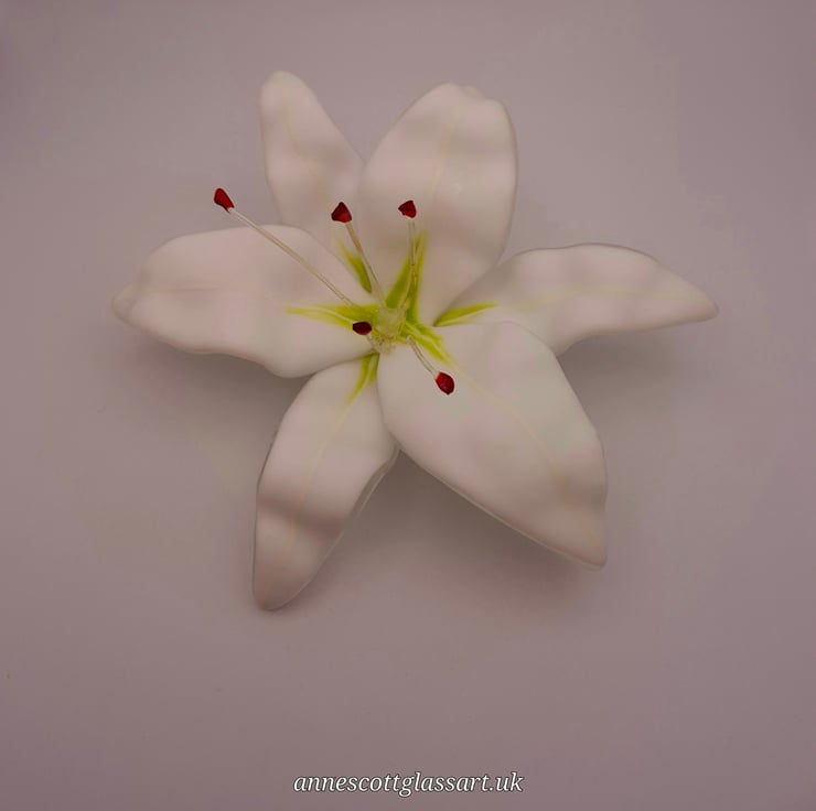 Handmade Fused Glass White Matte Lily 2 of 3 with Wall-mounting Bracket.