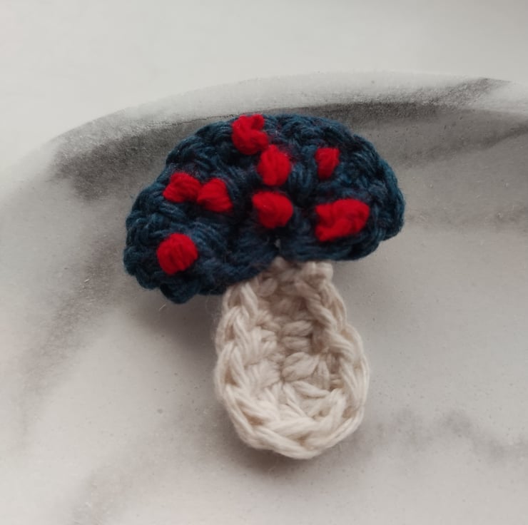 Crochet Mushroom Brooch with embroideries.