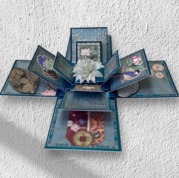 This unique 3D exploding box card from Koko Blue Crafts has been influenced by Japanese style and culture.