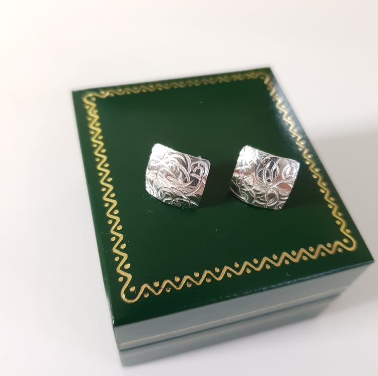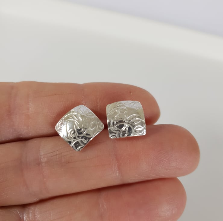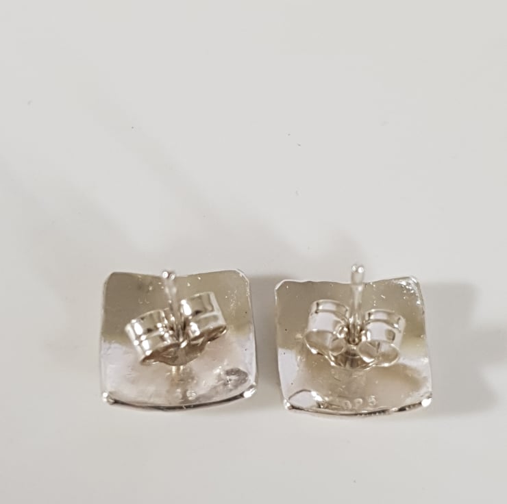 PLEASE note the size of the earrings. They are 1 cm square but may appear to be larger in photographs which have been enlarged to show detail.