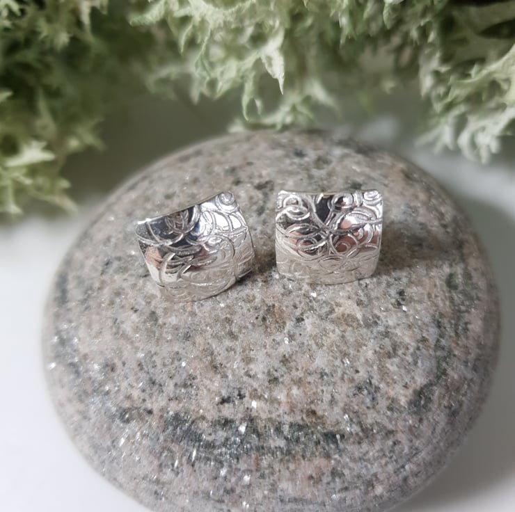 The earrings were textured to create a swirl pattern before being domed to create a slight convex shape.