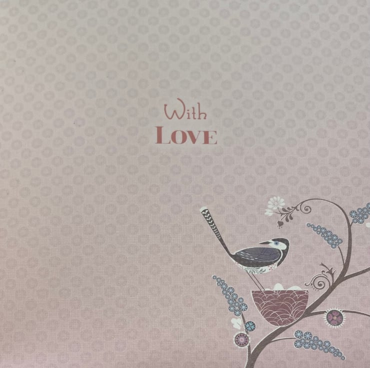 The inside of this 15 x 15 cms square card features a coordinating insert with the words With Love.