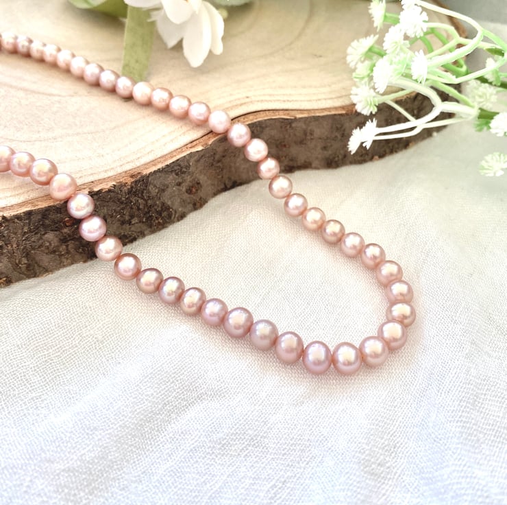 Add a pop of elegance to your look with our beautiful purple freshwater pearl necklace! Featuring 5-5.5mm pearls set in sterling silver, this 16-inch piece is perfect for any occasion.