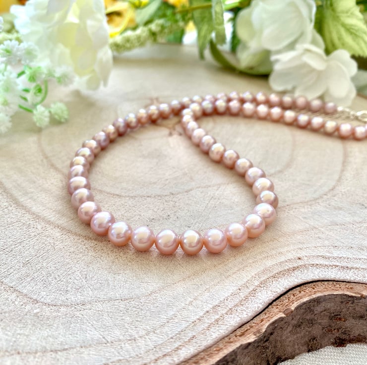 Purple Freshwater Pearl Necklace in Sterling Silver