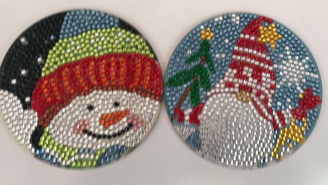 Sparkling beads have been placed one by one, by hand, to create these amazing coasters and bring the Christmas spirit closer. Each coaster was sealed after the beads were placed. Worked on these up to six hours.Heat Resistant Drink, Wood and Acrylic.