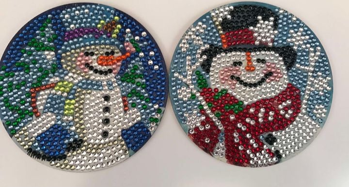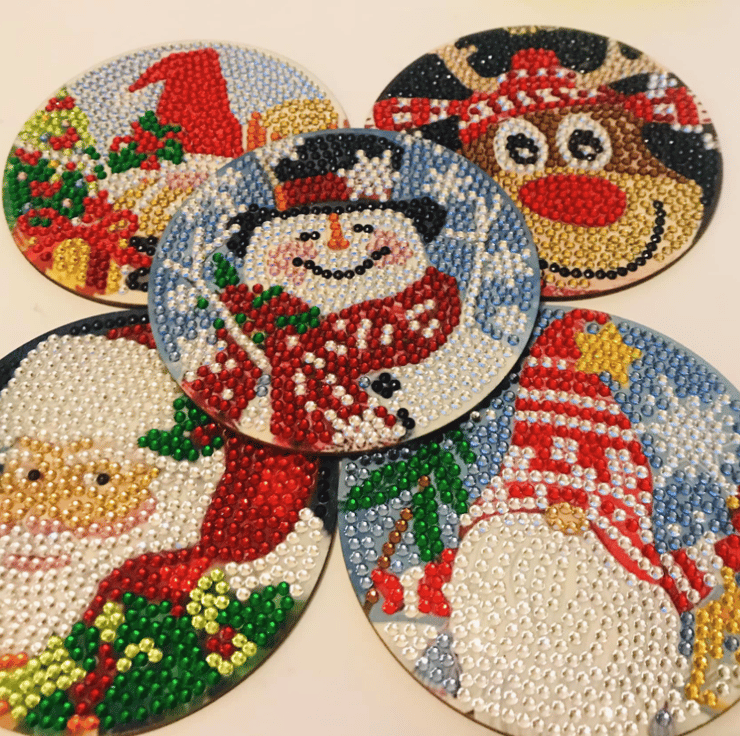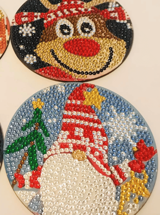 Diamond Art Coaster with Holder, Christmas Rudolph Snowman