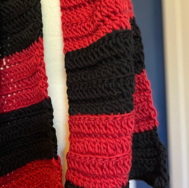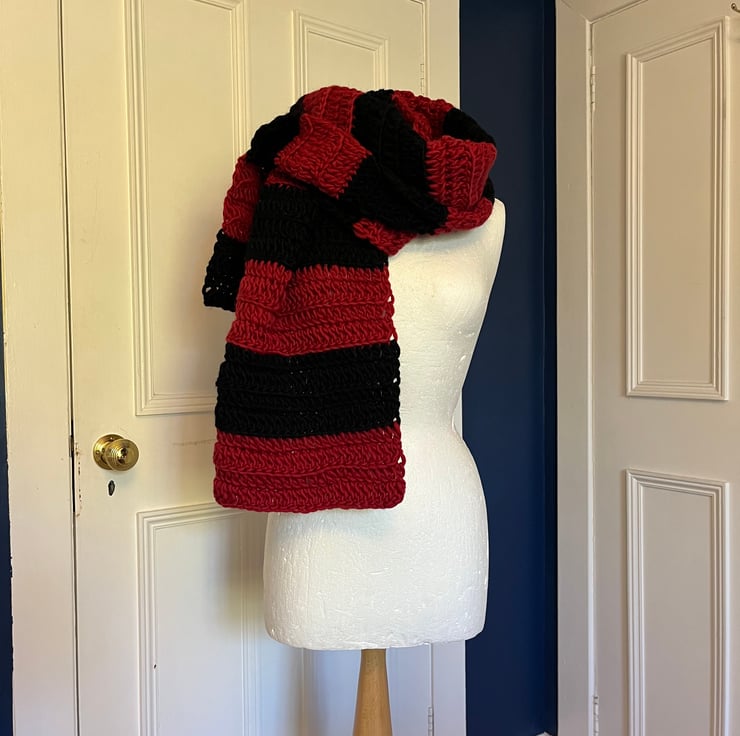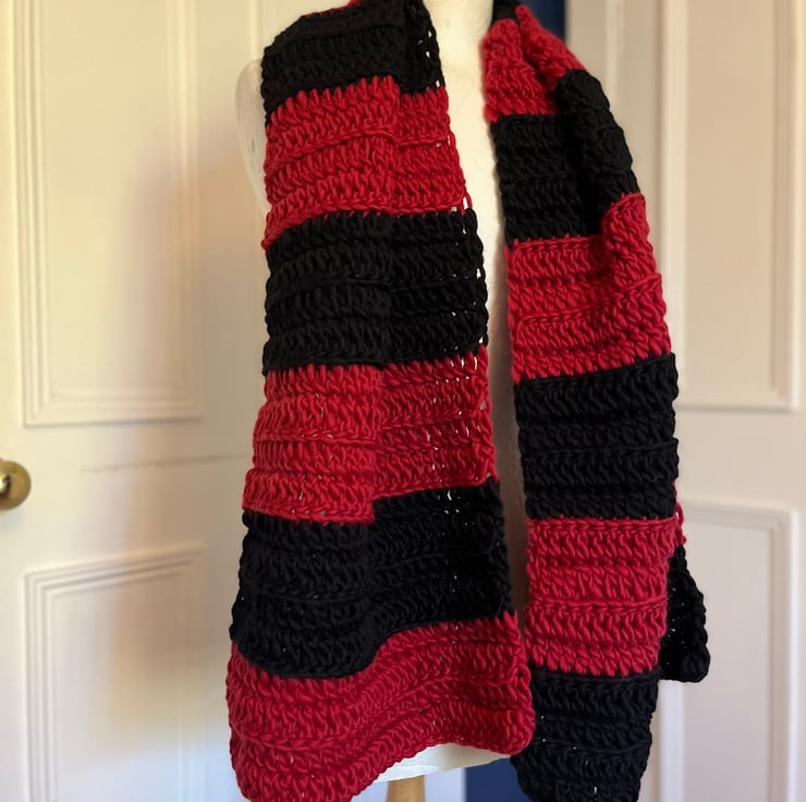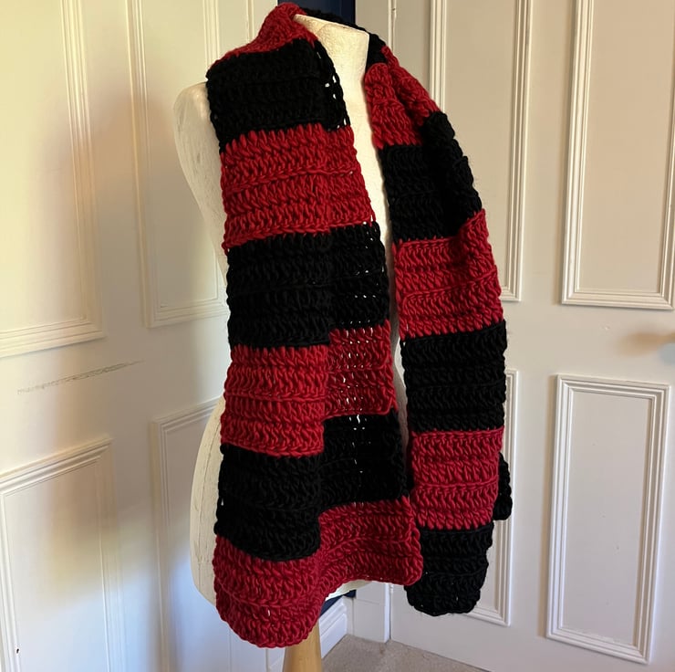 Inspiration was to crochet a scarf in red and black. A statement winter accessory!