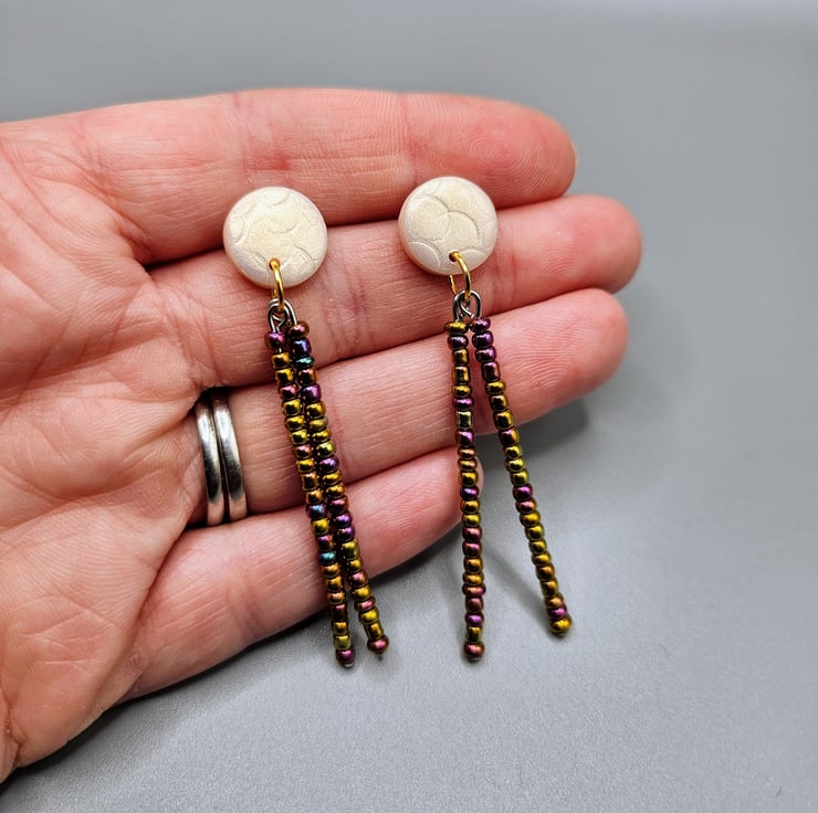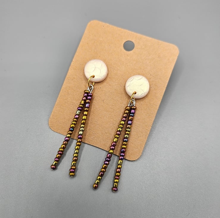 Gold polymer clay and beaded dangle earrings