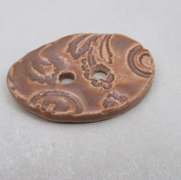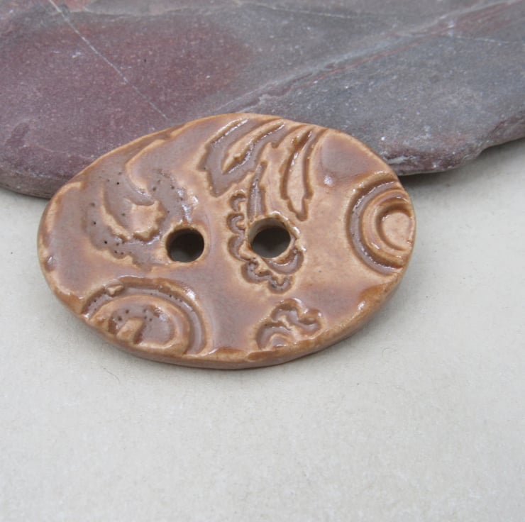Large Sand Brown Brocade Oval Handmade Ceramic Button