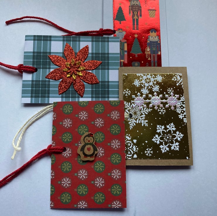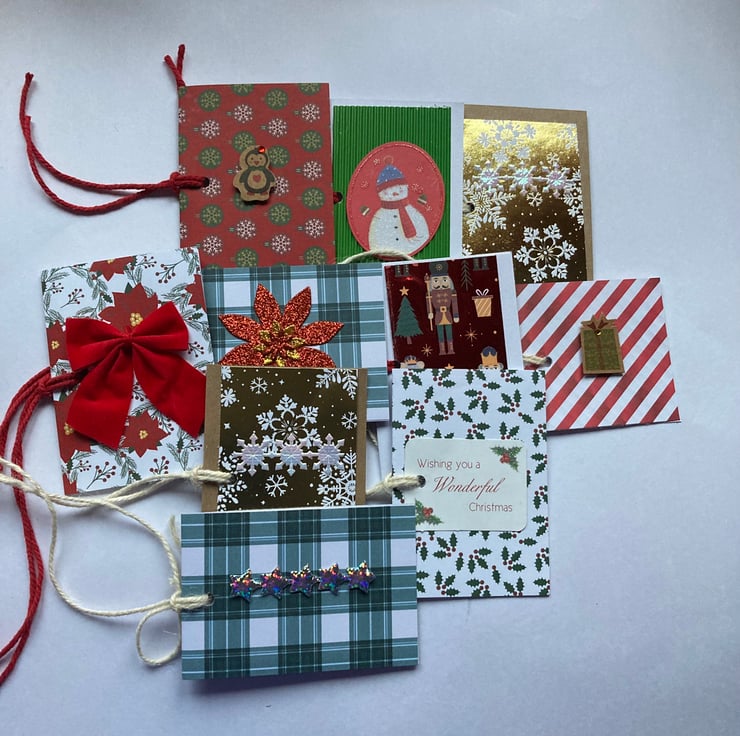 10 handmade Christmas gift tags.