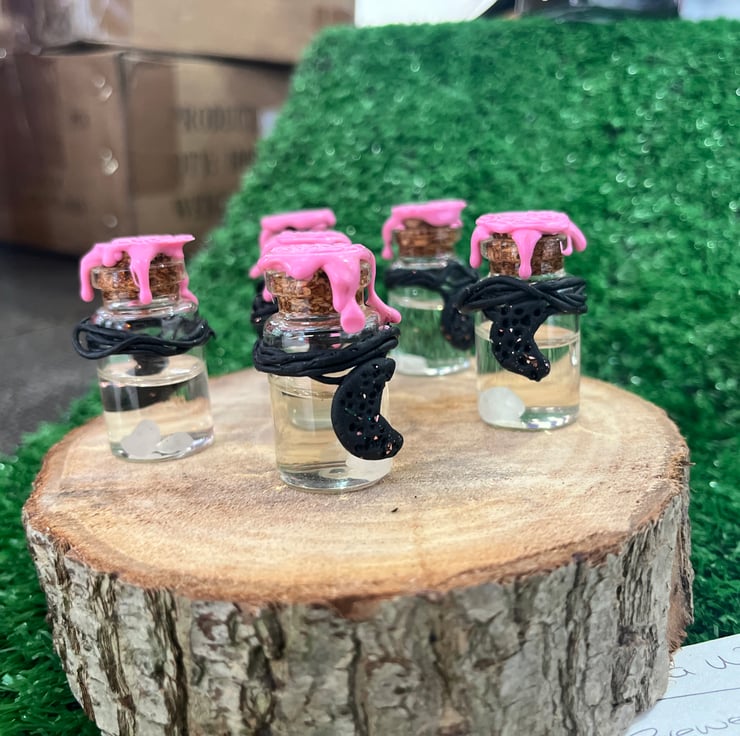 Fairy bottles filled with new moon water, rose quarts and sealed with pink wax , these are a unique addition to your home to promote wellbeing, or decant