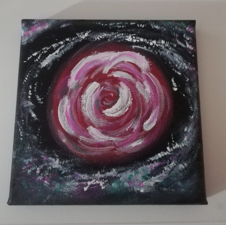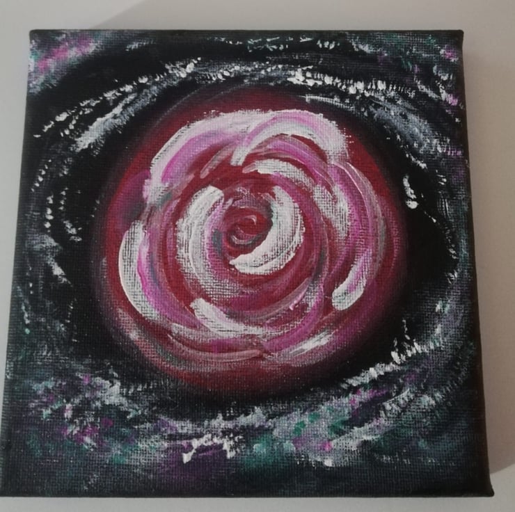 Abstract, Acrylic painting on canvas, hand painted. Size 6 x 6 inches. A slight shimmer effect Only this one available, there are no prints.