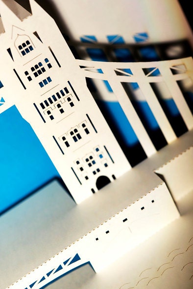 This beautiful pop-up card of Tower Bridge is delicately laser-cut and individually hand folded and trimmed. The card is A5 size and made from premium italian and uk paper stocks. Comes with an ivory C5 envelope.