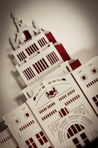 This beautiful pop-up card of the V&A Museum is delicately laser cut and individually hand folded and trimmed. The card is A5 size and made from premium italian and uk paper stocks. Comes with an ivory C5 envelope.