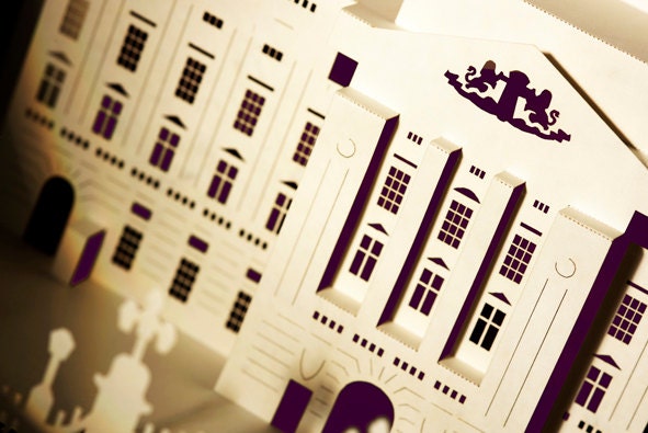 This beautiful pop-up card of Buckingham Palace is delicately laser-cut and individually hand folded and trimmed. The card is A5 size and made from premium italian and uk paper stocks. Comes with an ivory C5 envelope.