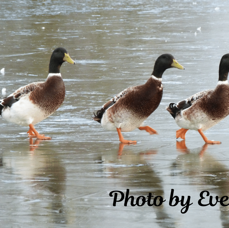 The photo was taken by myself on Buckley Common on a cold winter's day. These ducks looked very comical walking on the ice. Buckley is were I live in North east Wales near the market town of Mold.
