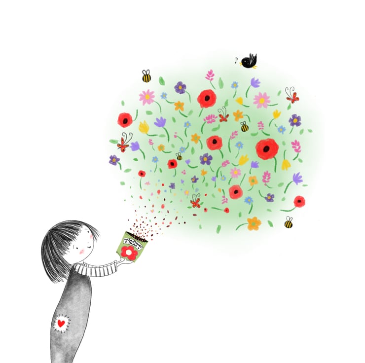 Featuring my illustration 'Bloom Wildly' this wire bound A5 notebook contains 35 pages, one side ruled ,one side plain, with coated front and back covers, and is perfect for doodles, notes, a journal for your thoughts, or for ideas and plans, and would make a lovely gift or stocking filler for anybody!