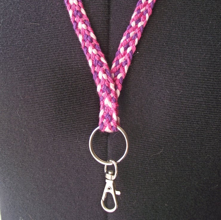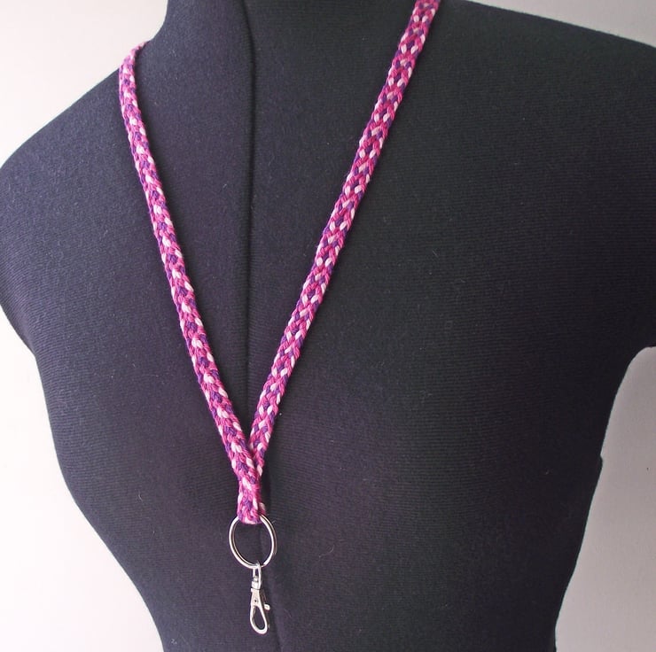 Lanyard for Identity Badge and Key, Kumihimo Braided Cotton in Pink and Purple