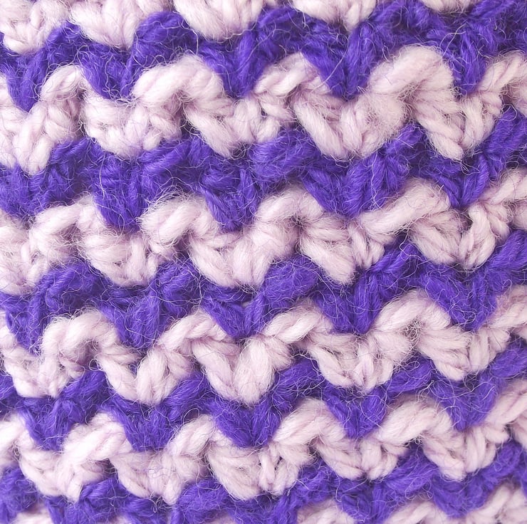 The main part of the bag is crocheted in a zig zag effect stitch and the base is crocheted in double crochet (UK) which is a denser more durable stitch.
