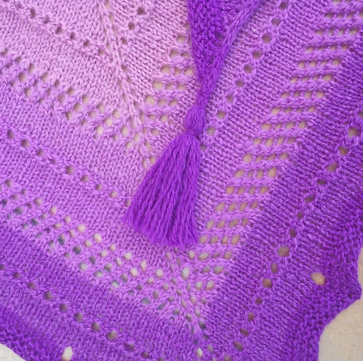 This shawl is so cosy to wear, either in the traditional way with the point at the back tied at the front or secured with a shawl pin, or the 'on trend' way, with the point at the front. I think this would look stunning with a dress on a special occasion, or it would also look great with jeans and a jumper or jacket. A great accessory to throw on for cooler summer evenings or mornings or wintry days.