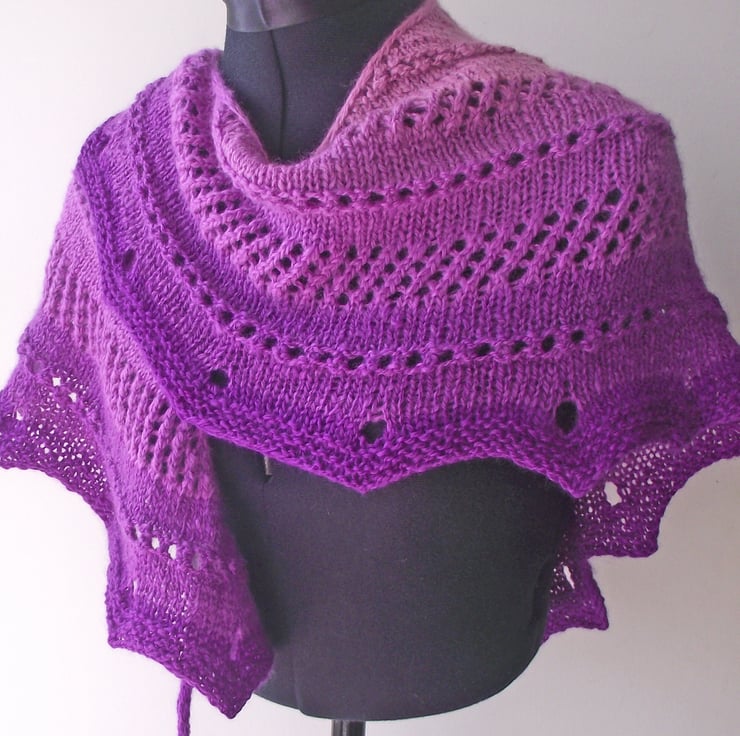 Handspun Knitted Shawl, Scarf or Wrap, Gradient Pink & Purple Pure Merino Wool