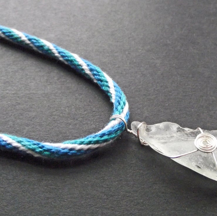 WIRE WRAPPED SEA GLASS and HANDWOVEN KUMIHIMO BRAID NECKLACE