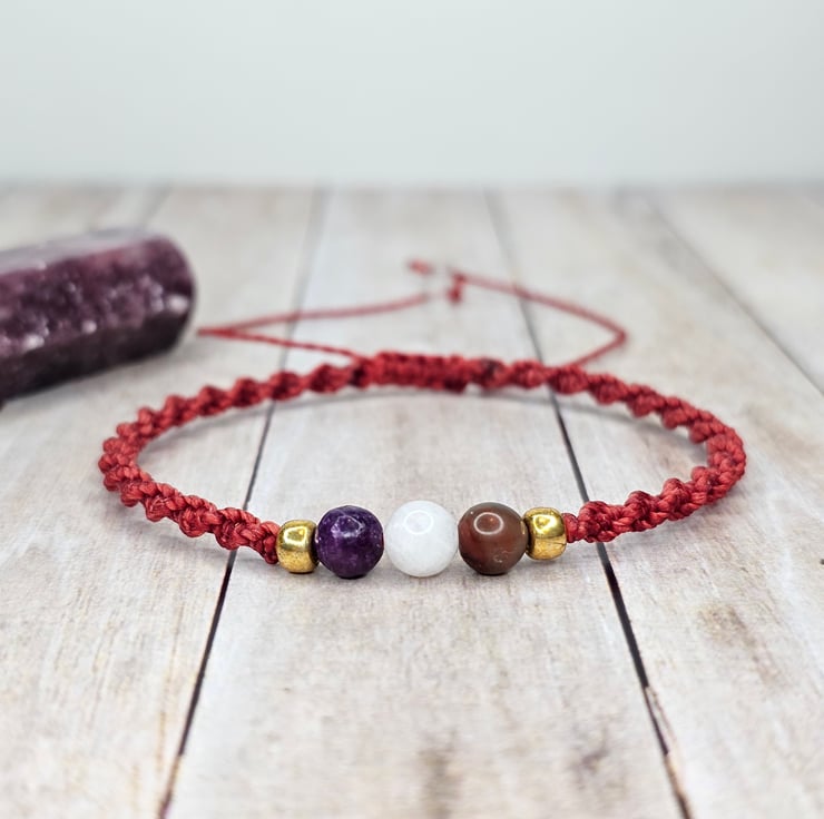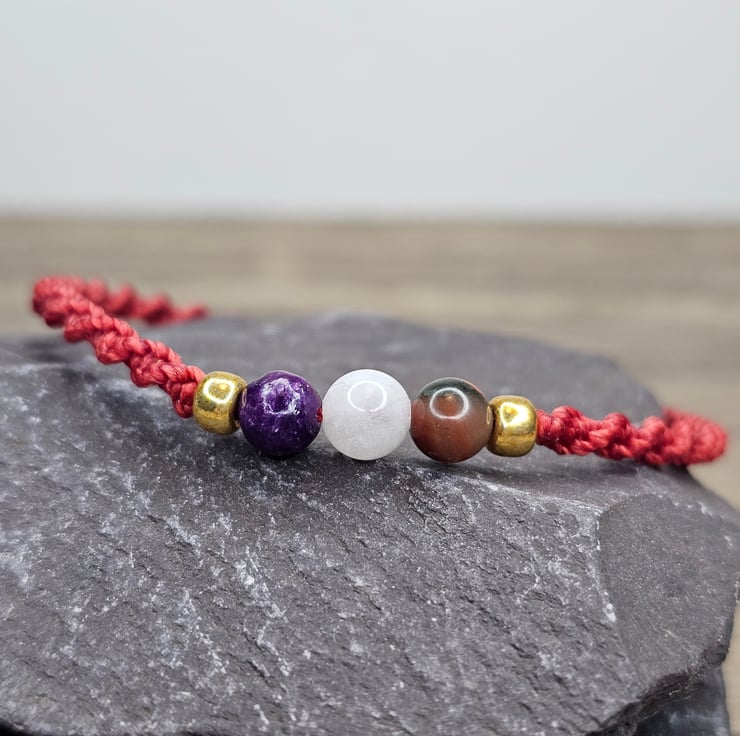 Hormonal Balance, Menopause Bracelet - Bloodstone, Moonstone, Lepidolite